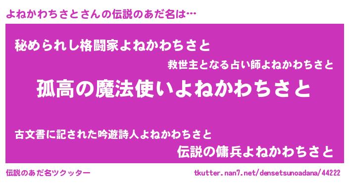 | 欧米人風あだ名 | 『ウサインよねかわちさと』 |