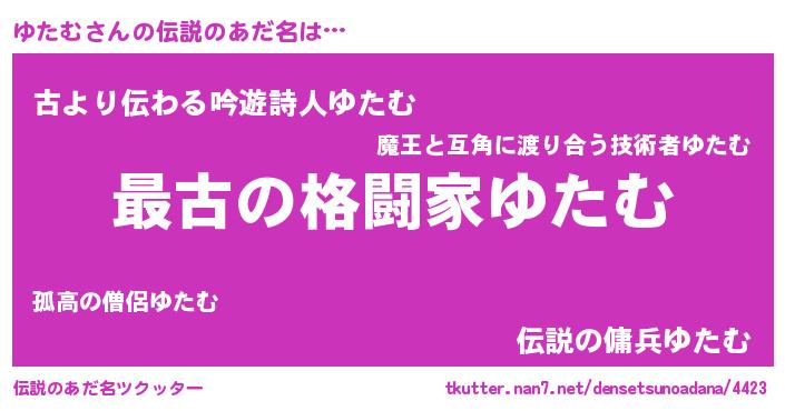 | 男性向けラノベタイトル風あだ名 | 『転生したらゆたむだった件』 |