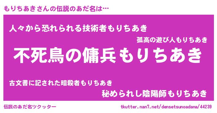 | 男性向けラノベタイトル風あだ名 | 『もりちあきの憂鬱』『緋弾のモリチアキ』 |