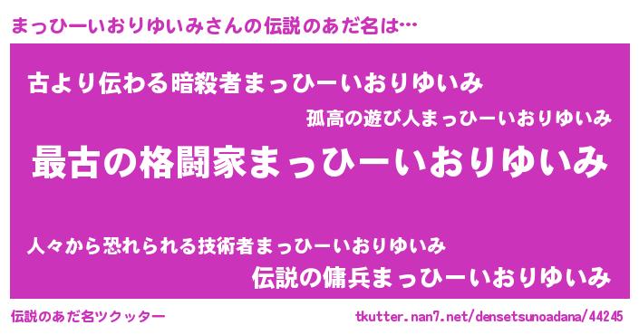 | ヒーロー風カッコイイあだ名 | 『サイバー戦士マッヒーイオリユイミ』 |