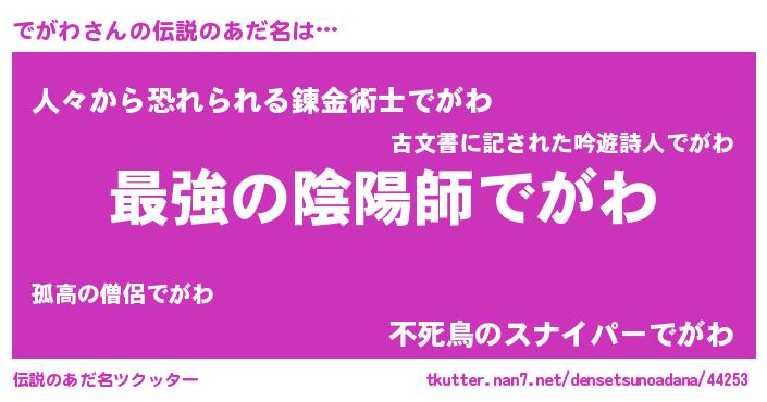 | ヒーロー風カッコイイあだ名 | 『究極戦士デガワ』『仮面デガダー』 |