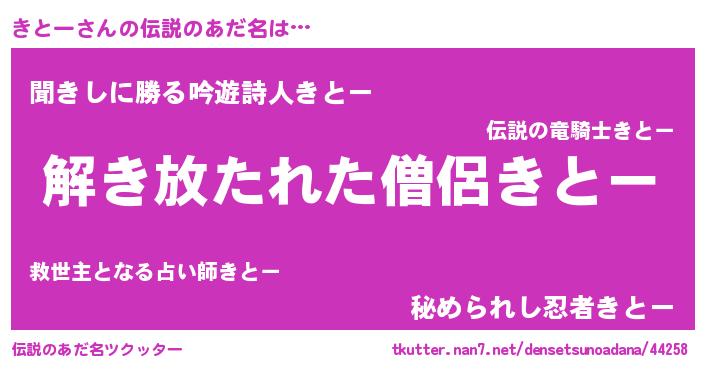 | ヒーロー風カッコイイあだ名 | 『最強戦士キトー』『暗黒騎士キト』 |