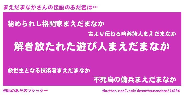 | 意味不明あだ名 | 『住所不定無職まえだまなか(79歳)』 |