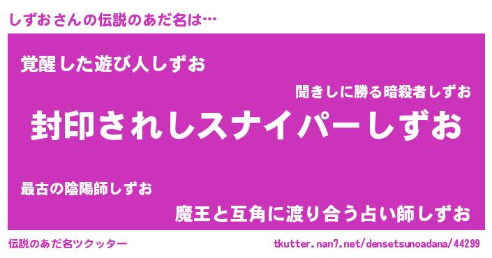 | ヒーロー風カッコイイあだ名 | 『スーパーシズオ』『暗黒騎士シズ』 |