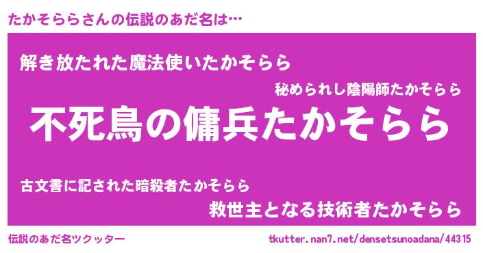 | 胡散臭い通販商品みたいなあだ名 | 『モテモテ間違いなし水晶球…その名も「たかそらら」』 |