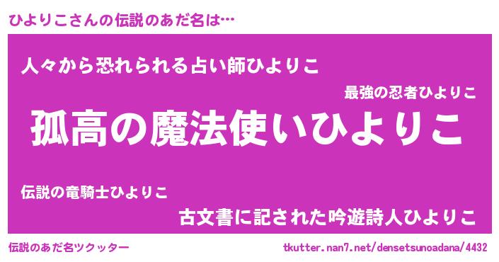 | ヘコむあだ名 | 『ひよを』『ひよりこ(笑)』 |