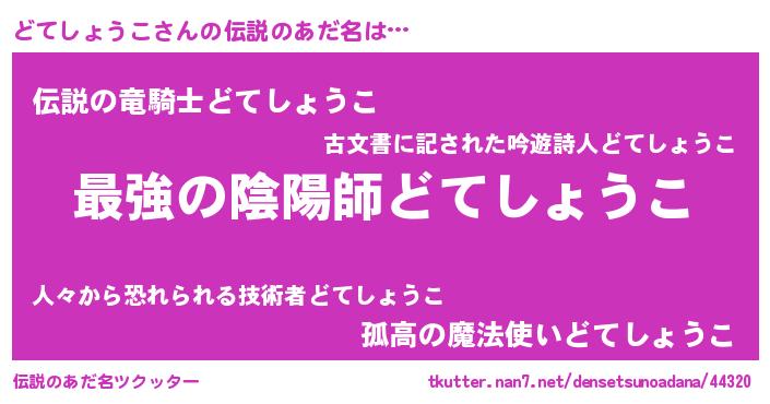 | 男性向けラノベタイトル風あだ名 | 『どてしょうこ~年齢イコール彼女いない歴の魔法使い~』 |