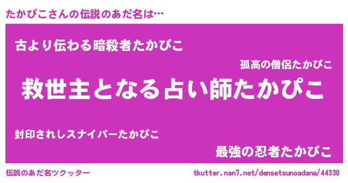 | ヒーロー風カッコイイあだ名 | 『天空の使者たかぴこ』『仮面タカダー』 |