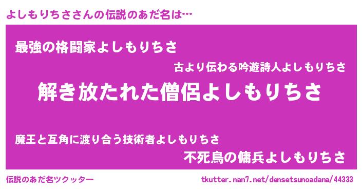 | 意味不明あだ名 | 『とにかく怪しいよしもりちさ』 |