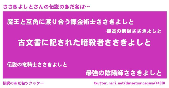 | ヒーロー風カッコイイあだ名 | 『究極戦士ササキヨシト』『幻影騎士ササ』 |