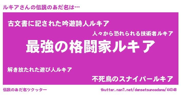 | ファンタジー風あだ名 | 『エターナルルキアー』『ルキディッシュ』 |