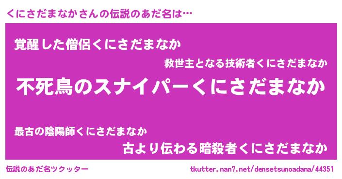 | 男性向けラノベタイトル風あだ名 | 『くにさだまなかの憂鬱』 |