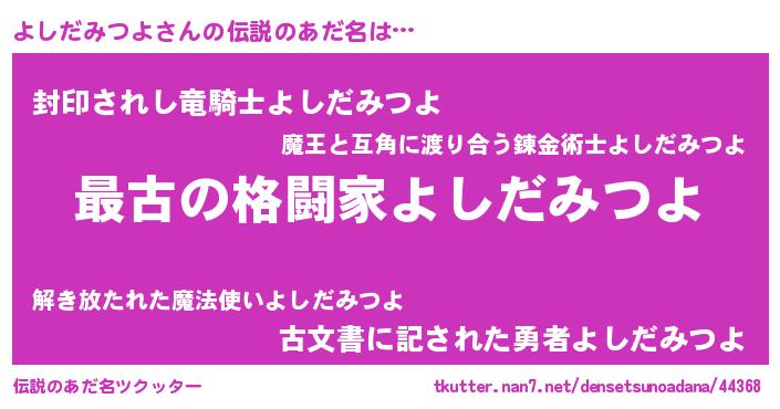 | ファンタジー風あだ名 | 『エターナルヨシダミツヨー』 |