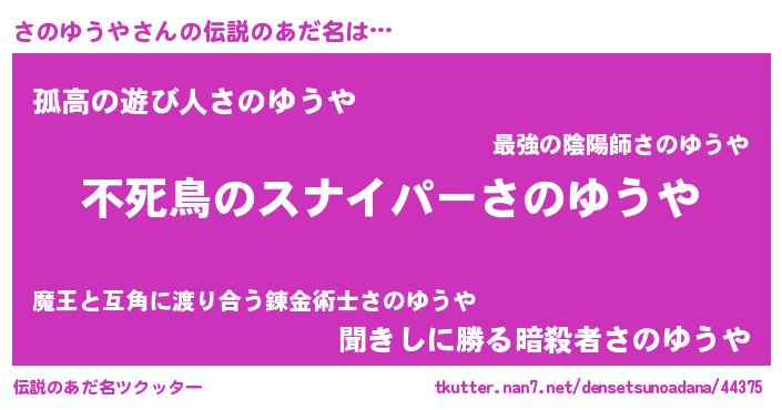 | ヒーロー風カッコイイあだ名 | 『スーパーサノユウヤ』『暗黒騎士サノ』 |