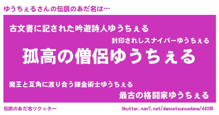 | ヒーロー風カッコイイあだ名 | 『暗黒騎士ユウ』『ネオユウチェル』 |
