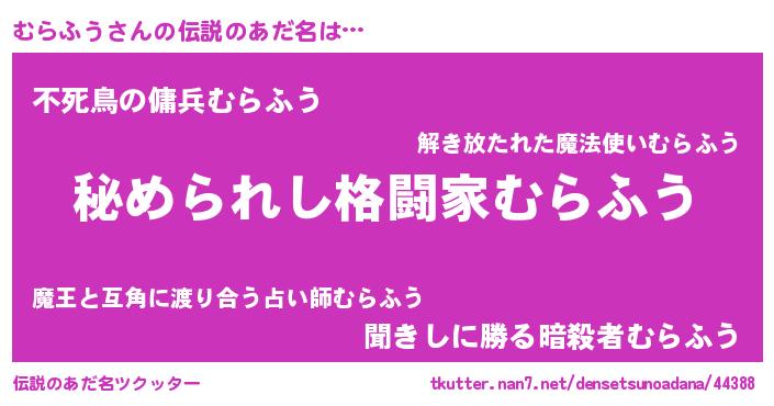 | ファンタジー風あだ名 | 『エターナルムラフウー』『ムラフェル』 |