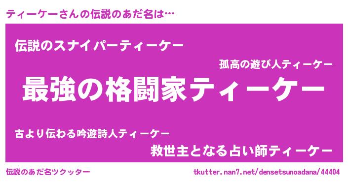 | 男性向けラノベタイトル風あだ名 | 『ティーケーに滅ぼされるだけの簡単なお仕事です』 |