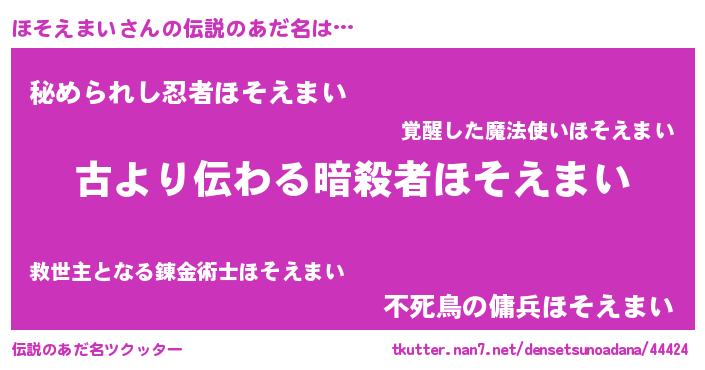 | 男性向けラノベタイトル風あだ名 | 『誰もが恐れるあのほそえまいが、ぼくの専属メイドになるようです。』 |