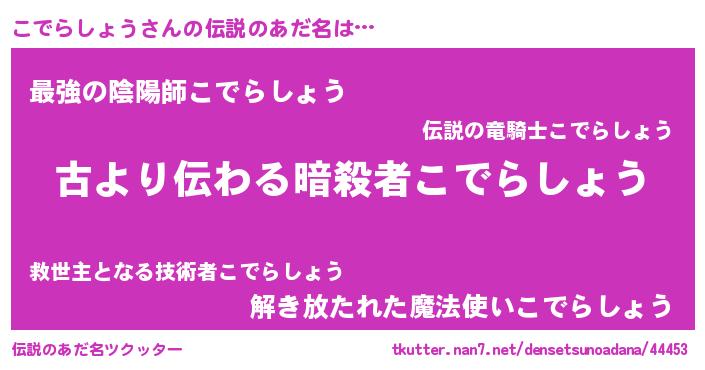 | 意味不明あだ名 | 『住所不定無職こでらしょう(41歳)』 |