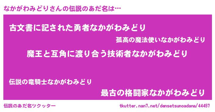 | ヘコむあだ名 | 『なかがわみどり(小並感)』『レバニラ』 |