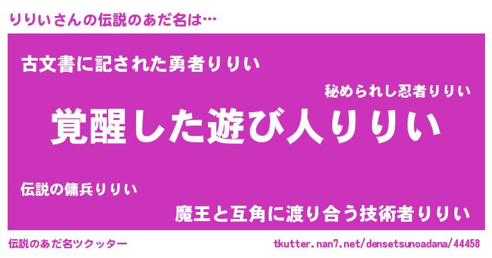 | ヘコむあだ名 | 『りりぷりん』『りりい(苦笑)』 |
