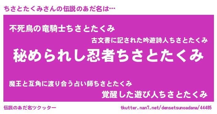 | 意味不明あだ名 | 『住所不定無職ちさとたくみ(68歳)』 |