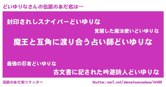 | 意味不明あだ名 | 『眠気覚ましガムどいゆりな味』 |