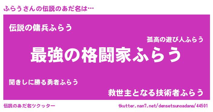 | 意味不明あだ名 | 『住所不定無職ふらう(11歳)』『自称ふらう』 |