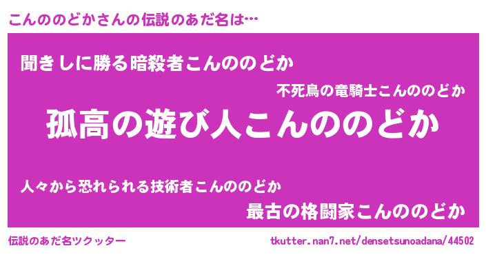 | 意味不明あだ名 | 『しいたけ科こんののどか属』 |