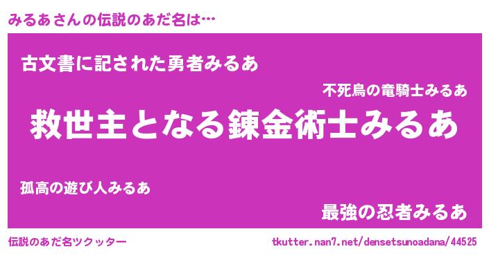 | ヒーロー風カッコイイあだ名 | 『天空の使者みるあ』『ネオミルア』 |