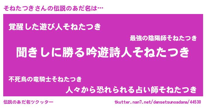 | 意味不明あだ名 | 『永久保存そねたつき』 |