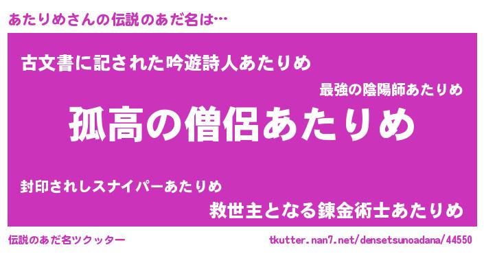 | ヒーロー風カッコイイあだ名 | 『魔戒騎士アタ』『ネオアタリメ』 |