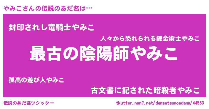 | 女子向けラノベタイトル風あだ名 | 『やみこアンティーク』 |
