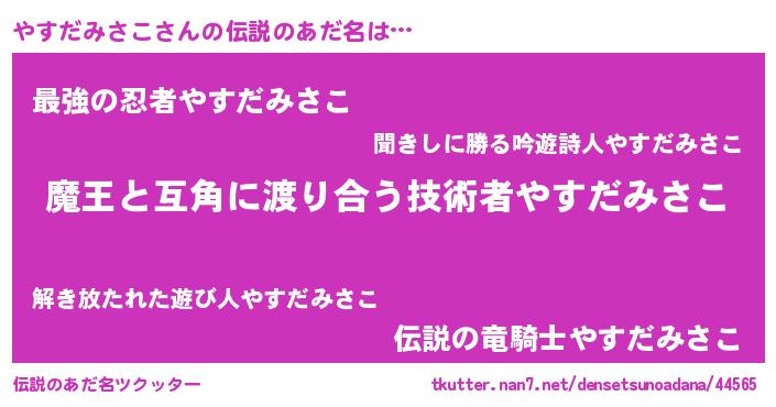 | ヒーロー風カッコイイあだ名 | 『仮面ヤスダー』『究極戦士ヤスダミサコ』 |