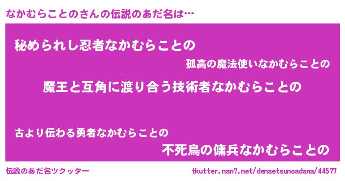 | 女子向けラノベタイトル風あだ名 | 『なかむらことの恋絵巻』 |