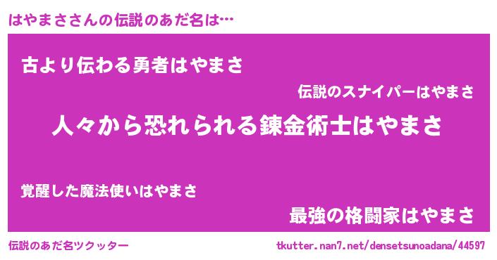 | ヒーロー風カッコイイあだ名 | 『超時空戦士ハヤマサ』『ネオハヤマサ』 |