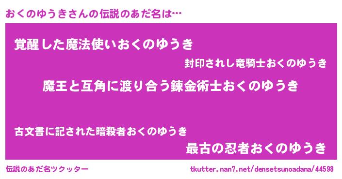 | 欧米人風あだ名 | 『おくのゆうき・ステッグマイヤー』 |