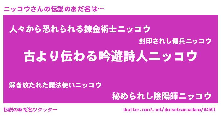 | 意味不明あだ名 | 『自称ニッコウ』『永久保存ニッコウ』 |