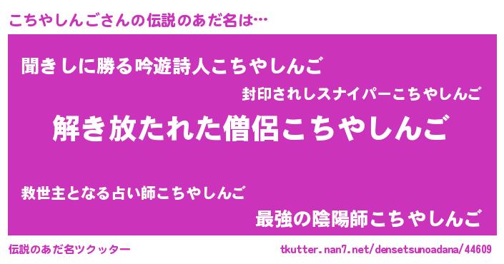 | 女子向けラノベタイトル風あだ名 | 『こちやしんごの卵を拾いまして』 |