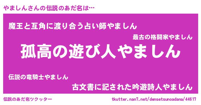 | ヒーロー風カッコイイあだ名 | 『魔戒騎士ヤマ』『最強戦士ヤマシン』 |