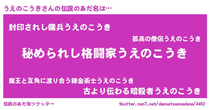| 意味不明あだ名 | 『住所不定無職うえのこうき(5歳)』 |