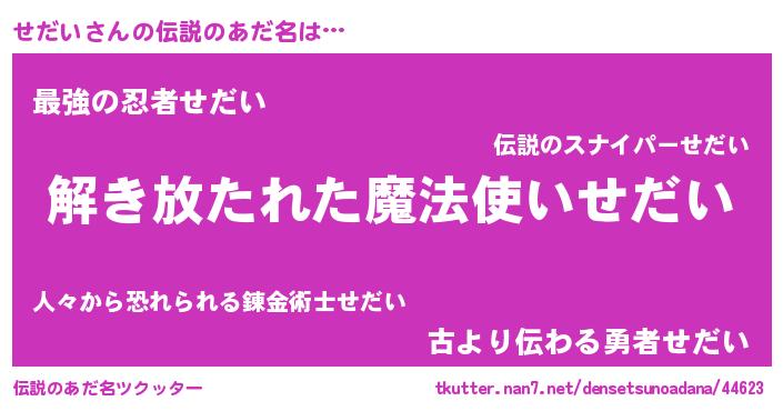 | ヒーロー風カッコイイあだ名 | 『銀牙騎士セダ』『ウルトラせだいマン』 |