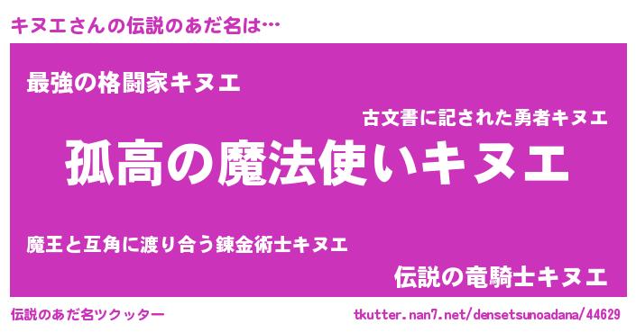 | 意味不明あだ名 | 『とにかく怪しいキヌエ』『自称キヌエ』 |