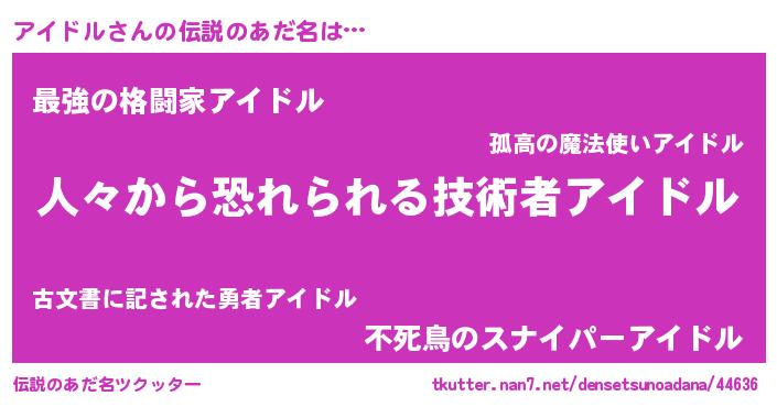 | ヒーロー風カッコイイあだ名 | 『正義の使者アイドル』『仮面アイダー』 |