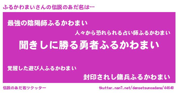 | 意味不明あだ名 | 『永久保存ふるかわまい』 |