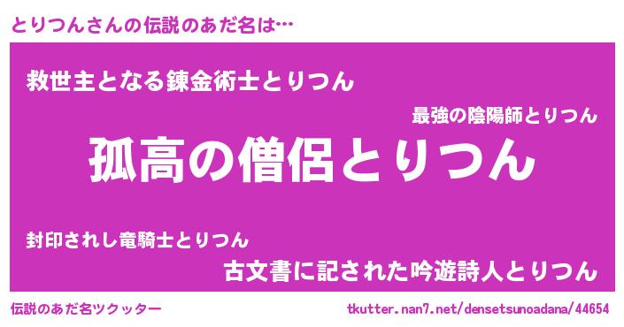 | ヒーロー風カッコイイあだ名 | 『仮面トリダー』『最強戦士トリツン』 |