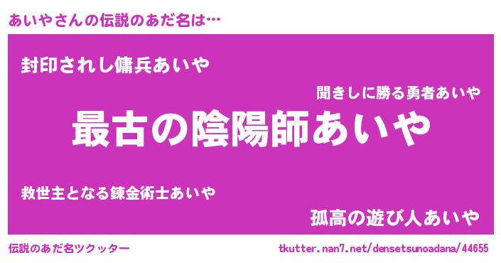 | 意味不明あだ名 | 『あいやフォーエバー』『ペロリンあいや』 |