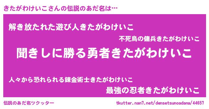 | ヒーロー風カッコイイあだ名 | 『ネオキタガワケイコ』『仮面キタダー』 |