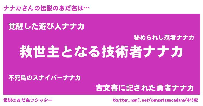 | ヒーロー風カッコイイあだ名 | 『天空の使者ナナカ』『最強戦士ナナカ』 |