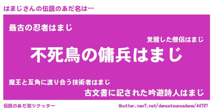 | 女子向けラノベタイトル風あだ名 | 『はまじ姫と円卓の騎士』 |
